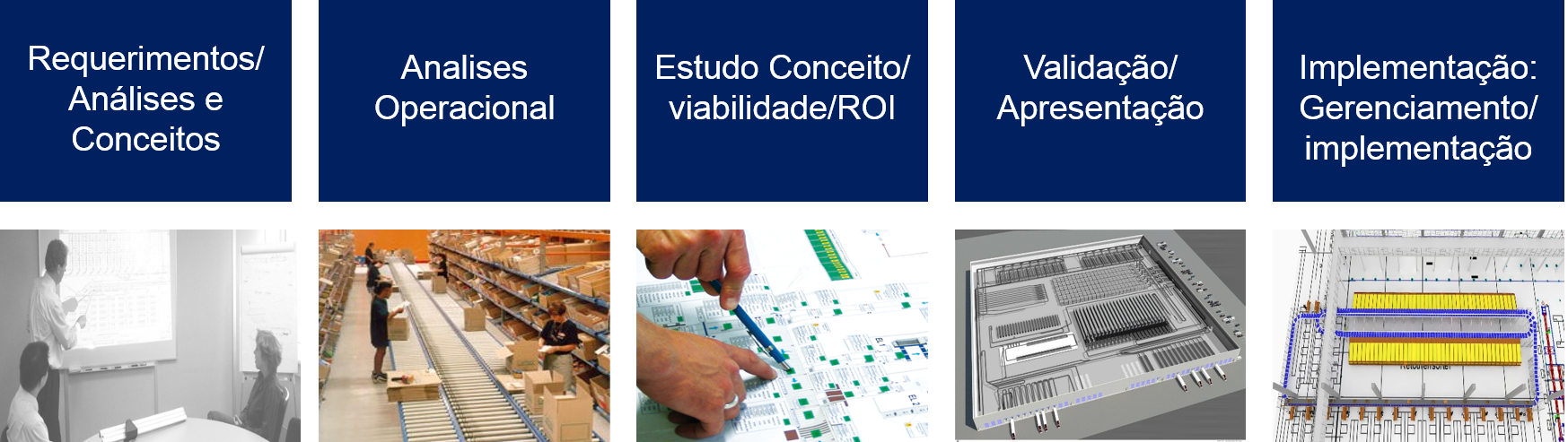 - Desenho novos centros de distribuição automáticos / manuais